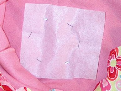 Auf die Rückseite (linke Stoffseite) kommt ein Stück abreißbare Stickeinlage.